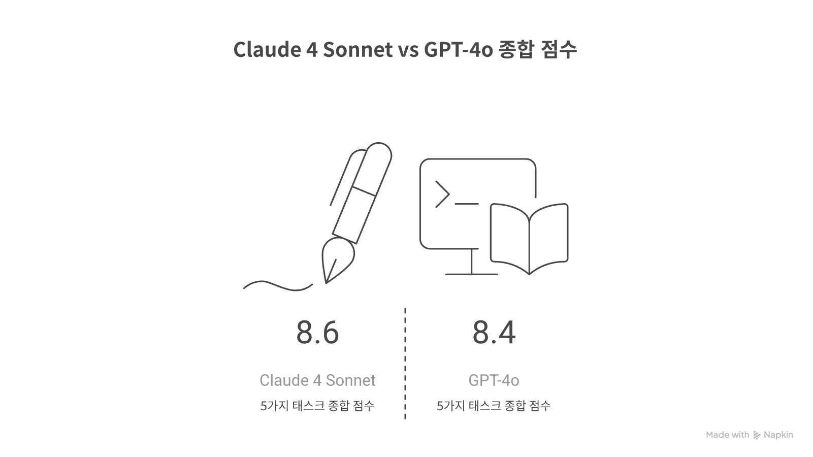 | 평균 | 8.6 | 8.4 | Claude |